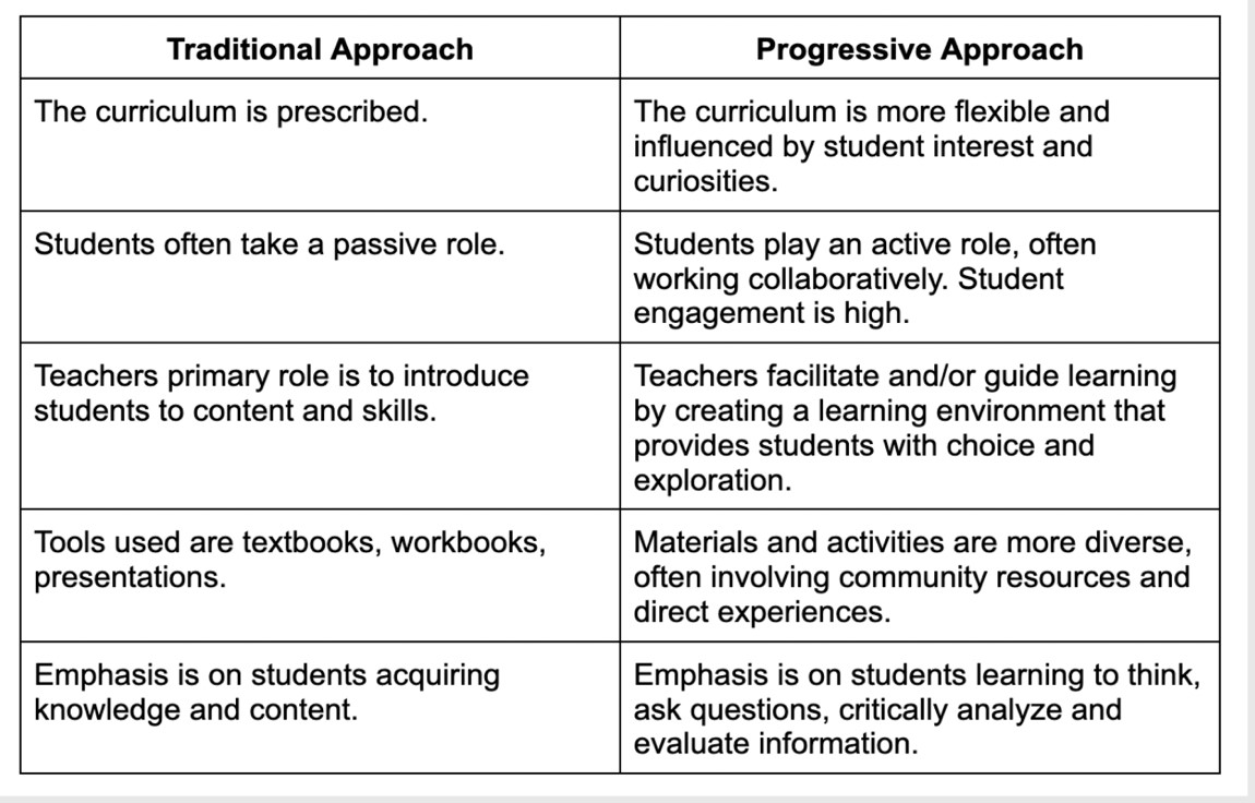 Standards-based grading refers to assessment based on individual standards or criterion rather than providing a single holistic grade for an assignment (i.e. “A” or “B”). While it is perceived to be a more precise measurement of student performance, the rubrics are cumbersome to develop, and parents have difficulty tracking student progress. More importantly, progressive grading structures remove the social-emotional learning that used to be naturally embedded in the curriculum, as attendance, participation, effort, and behavior are not part of the student’s grade.