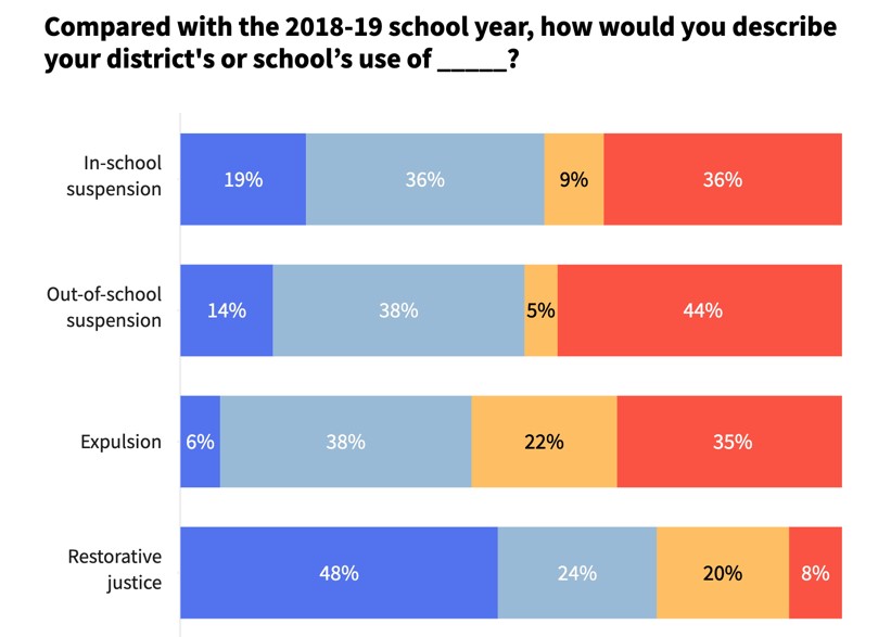 [7] Peetz, C. (2024, April 19). How much educators say they use suspensions, expulsions, and restorative justice. Education Week. https://www.edweek.org/leadership/how-much-educators-say-they-use-suspensions-expulsions-and-restorative-justice/2024/04
